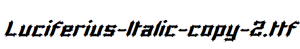 Luciferius-Italic-copy-2.ttf is a very beautiful fonts,Luciferius-Italic-copy-2.ttf download link,download fonts Luciferius-Italic-copy-2.ttf.Luciferius-Italic-copy-2.ttf is a very beautiful art font, Luciferius-Italic-copy-2.ttf is widely used in various books and periodicals, album design printing, Luciferius-Italic-copy-2.ttf has a strong visual impact, Luciferius-Italic-copy-2.ttf newspapers and magazines and books commonly used fonts, posters, personality to promote brand logo design, Font design, etc., environment, font Luciferius-Italic-copy-2.ttf download location, Luciferius-Italic-copy-2.ttf where to download .Luciferius-Italic-copy-2.ttf font installation.