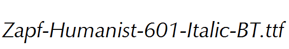 Zapf-Humanist-601-Italic-BT.ttf is a very beautiful fonts,Zapf-Humanist-601-Italic-BT.ttf download link,download fonts Zapf-Humanist-601-Italic-BT.ttf.Zapf-Humanist-601-Italic-BT.ttf is a very beautiful art font, Zapf-Humanist-601-Italic-BT.ttf is widely used in various books and periodicals, album design printing, Zapf-Humanist-601-Italic-BT.ttf has a strong visual impact, Zapf-Humanist-601-Italic-BT.ttf newspapers and magazines and books commonly used fonts, posters, personality to promote brand logo design, Font design, etc., environment, font Zapf-Humanist-601-Italic-BT.ttf download location, Zapf-Humanist-601-Italic-BT.ttf where to download .Zapf-Humanist-601-Italic-BT.ttf font installation.